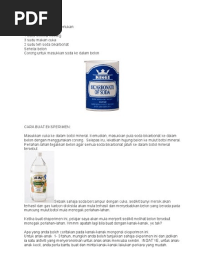 Contoh 1. Nah kali ini Bobo akan mengajak teman-teman semua untuk bereksperimen sederhana dengan balon nih. 2 Kemudian masukkan beberapa sudu soda penaik ke dalam belon.