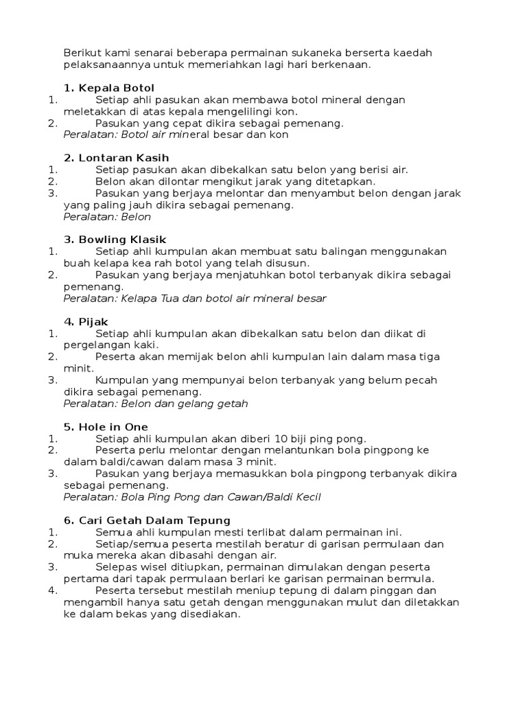 For more information and source see on this link. Berikut ialah pelbagai idea acara sukaneka yang boleh dilakukan ketika sukan hari guru hari kanak. 5 pm aktiviti sukaneka di pantai.